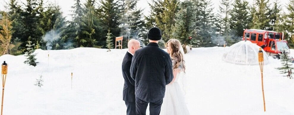 For a truly unique Whistler elopement, nothing beats saying your vows inside a private snow globe. Arrive in a warm, comfortable snowcat with up to 10 guests and step into your own winter wonderland. This experience is perfect for adventurous couples wanting a memorable, one-of-a-kind mountain elopement.